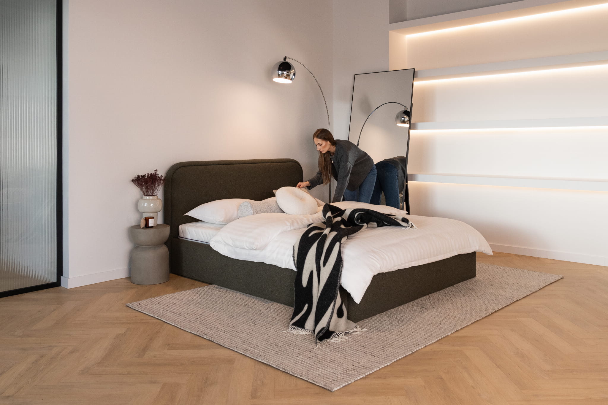 Gestalte dein Bett genau nach deinen Wünschen. Wir bieten eine vollständige Personalisierung – von der Auswahl der Größe über die Art des Bezugsstoffs bis hin zu zusätzlichen Funktionen wie Bettkasten oder Kopfteil. So kannst du ein Bett kreieren, das perfekt zu deinem Wohnstil und Lebensstil passt.
