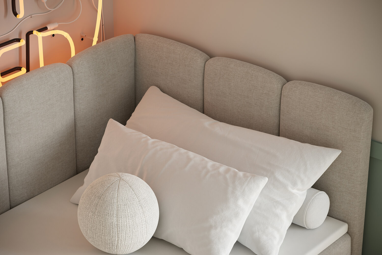 Unsere Bezugsstoffe vereinen Stil und Robustheit. Sie sind abriebfest, pflegeleicht und in zahlreichen Farben sowie Strukturen erhältlich, damit du das Bett perfekt an dein Interieur anpassen kannst.