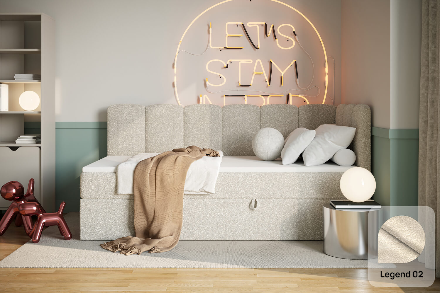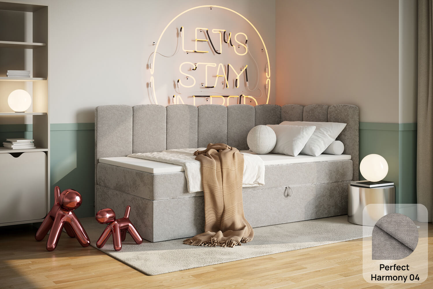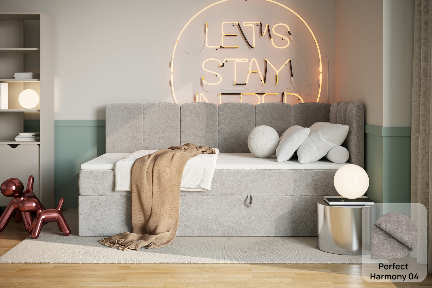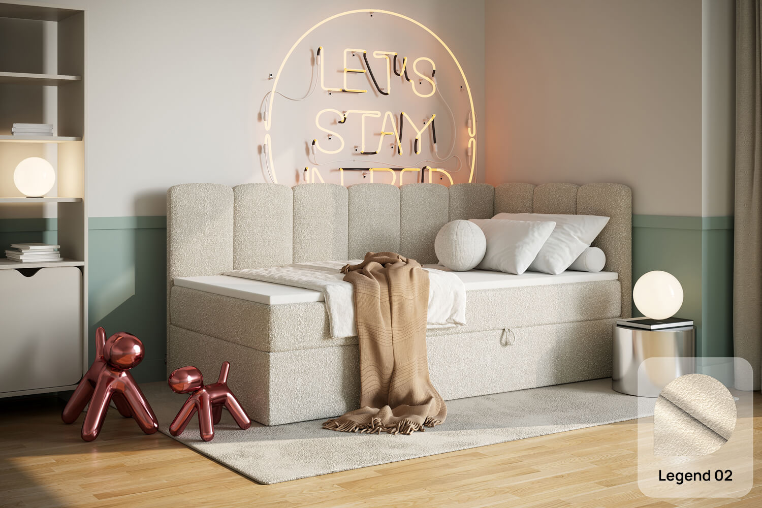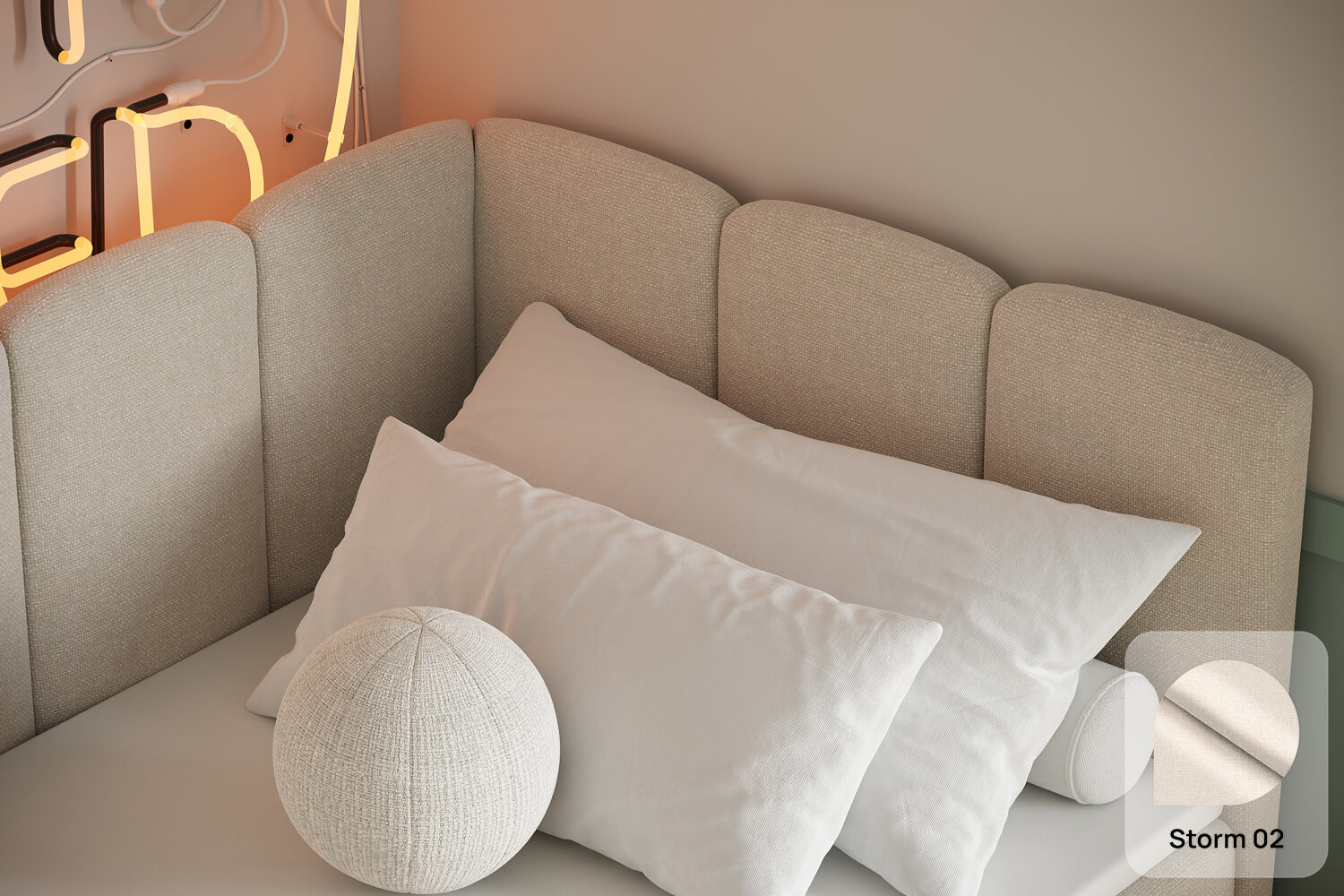 Unsere Bezugsstoffe vereinen Stil und Robustheit. Sie sind abriebfest, pflegeleicht und in zahlreichen Farben sowie Strukturen erhältlich, damit du das Bett perfekt an dein Interieur anpassen kannst.