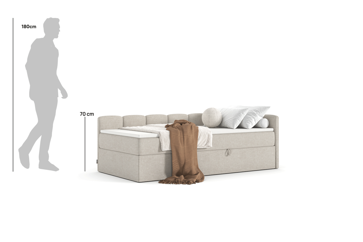 Nilo Conti von MyBed ist ein Einzel-Boxspringbett, das mit schlichter Eleganz begeistert und dich gleichzeitig von zwei Seiten umhüllt – dank eines gepolsterten Kopfteils aus vertikalen Paneelen, das an der langen und an der kurzen Bettseite angebracht ist. Die weiche Form mit sanft abgerundeten Kanten verleiht dem Gesamtbild subtile Leichtigkeit, während der Verzicht auf zusätzliche Verzierungen einen harmonischen, minimalistischen Look schafft, der perfekt zu modernen Interieurs passt. Sorgfältig ausgewählte Materialien garantieren Langlebigkeit, und die komfortable Boxspring-Konstruktion bietet höchsten Liegekomfort. Noli Conti wird schnell zu deinem Lieblingsmöbelstück!