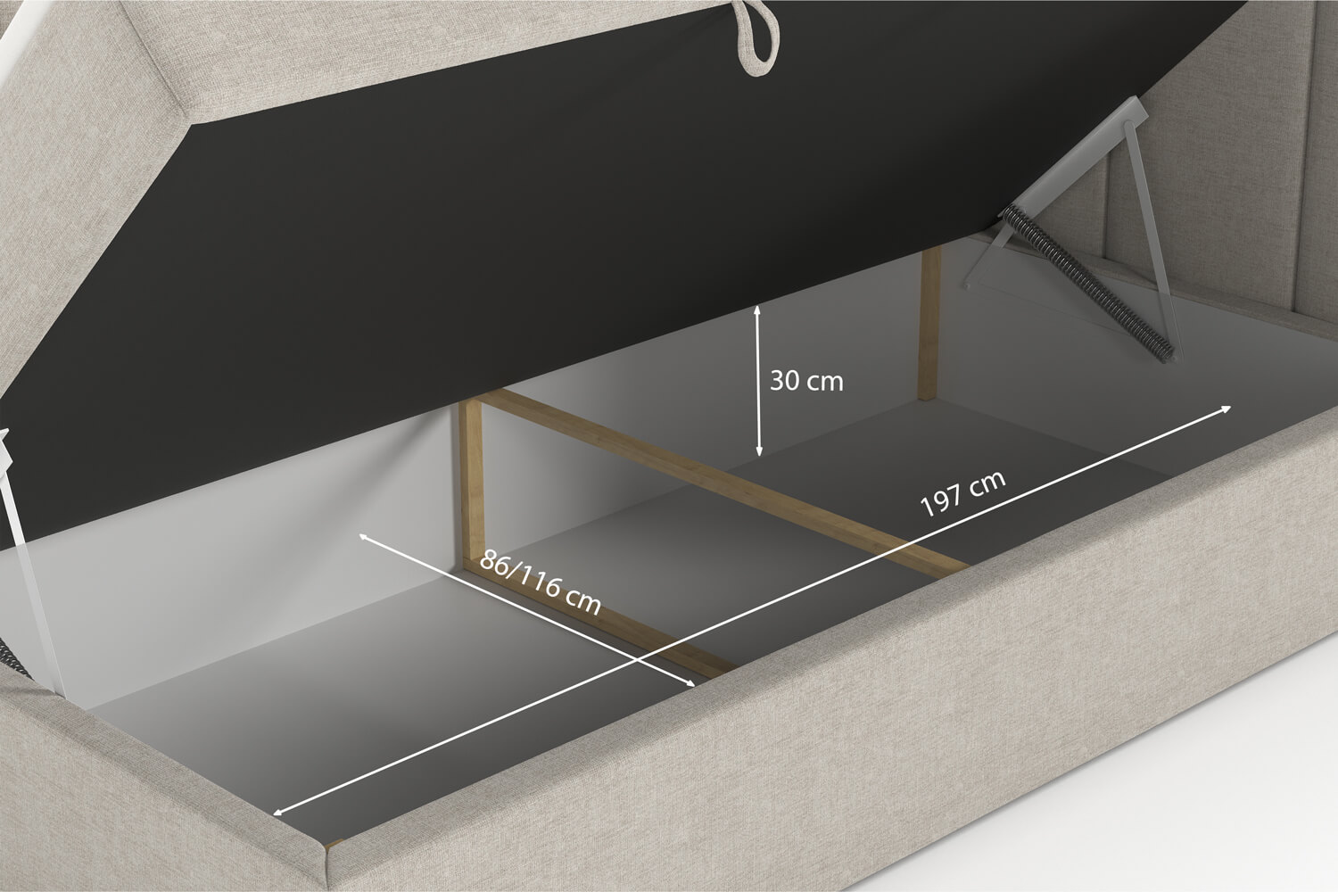 Der funktionale Bettkasten bietet zusätzlichen Stauraum – ideal für Bettwäsche, Kissen und vieles mehr. Gefertigt aus langlebigen Materialien, ist er leicht zu bedienen und sorgt für Ordnung im Schlafzimmer.