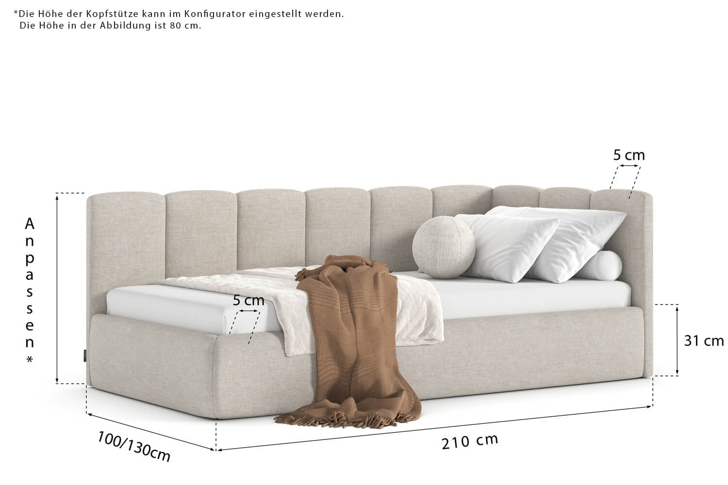 Die angezeigten Abmessungen kannst du ändern, indem du im Konfigurator eine andere Liegefläche wählst