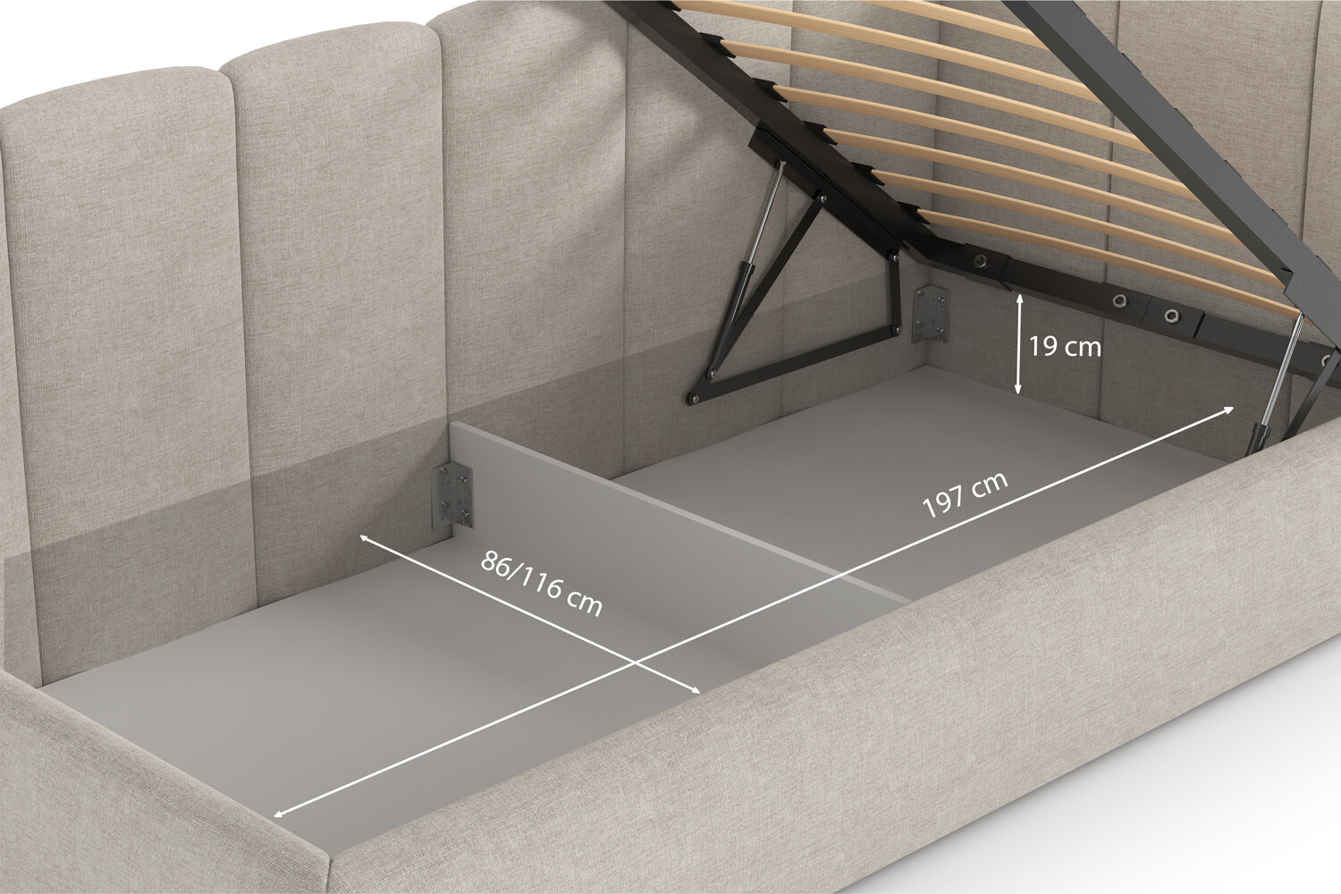 Der funktionale Bettkasten unserer Betten bietet zusätzlichen Stauraum. Ideal zum Aufbewahren von Bettwäsche, Kissen und anderen Gegenständen, hilft er dabei, Ordnung im Schlafzimmer zu halten. Gefertigt aus langlebigen Materialien, ist er leicht zu bedienen und sorgt für hohen Nutzungskomfort.