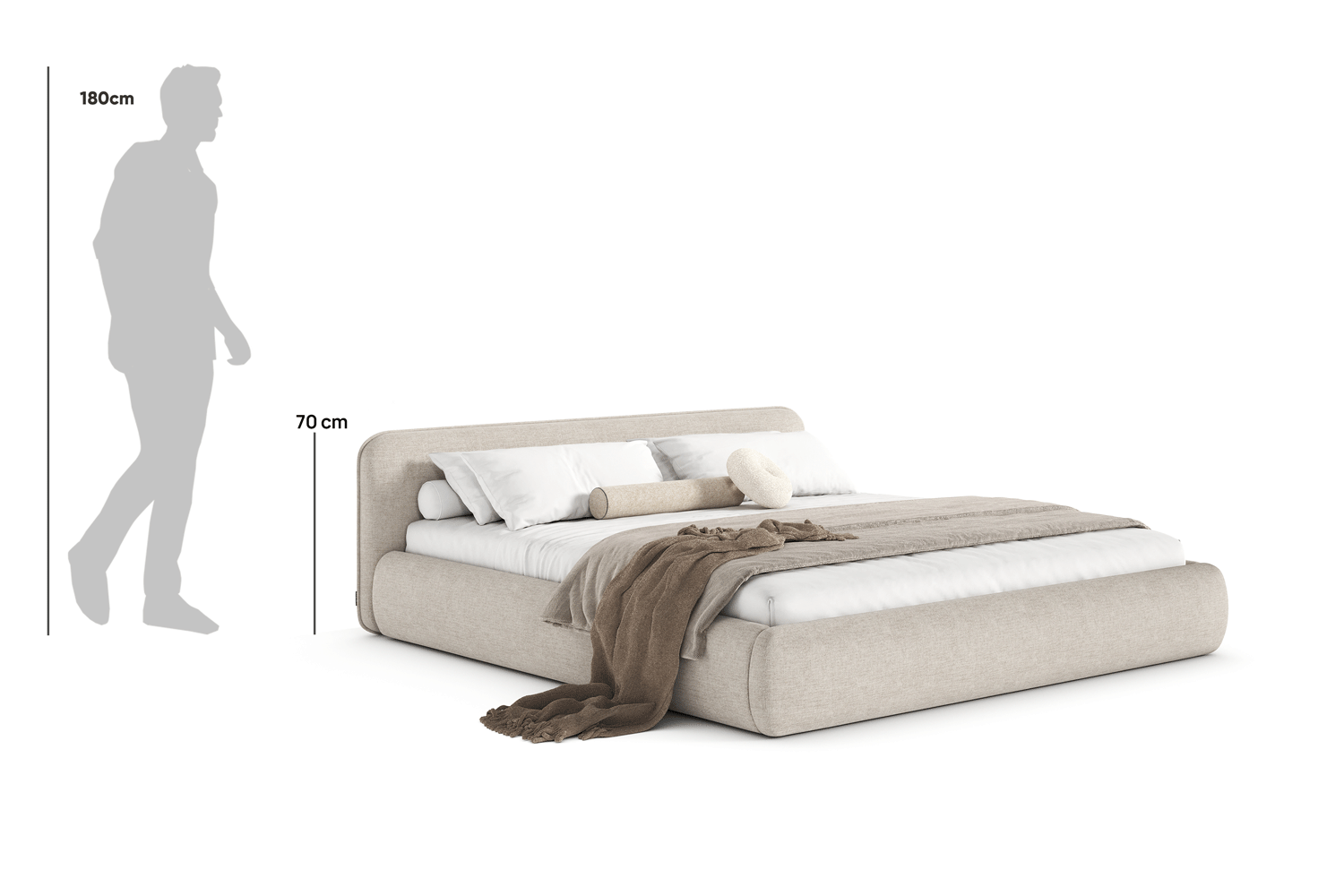 Odette von MyBed ist ein Bett, das schon auf den ersten Blick außergewöhnliche Bequemlichkeit und Weichheit verspricht. Sein gepolstertes, sanft abgerundetes Kopfteil erinnert an ein großes, flauschiges Kissen und schafft eine gemütliche Stütze – ideal für die abendliche Entspannung. Die subtile, neutrale Farbgebung der Polsterung sorgt dafür, dass dieses Modell sowohl in modernen als auch in klassischeren Einrichtungen hervorragend zur Geltung kommt. Die leichte und harmonische Form des Bettes Odette bringt eine Atmosphäre der Ruhe, Wärme und stilvollen Behaglichkeit ins Schlafzimmer – die ideale Wahl für alle, die Ästhetik mit dem Komfort der täglichen Erholung verbinden.