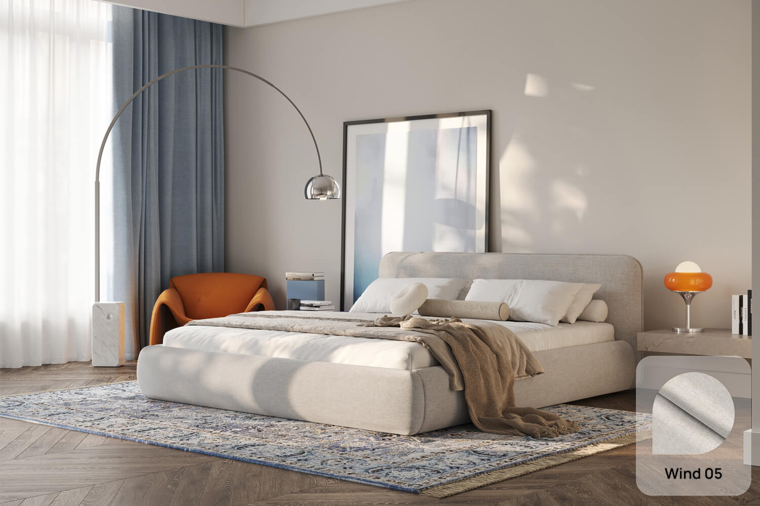 Bett Odette 160x200, Stoff WIND 05, Metallgestell