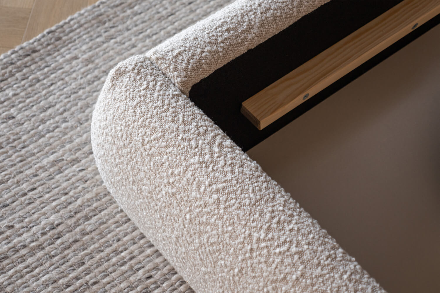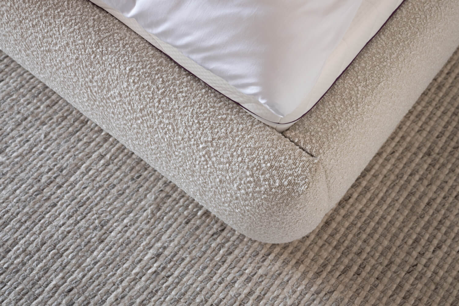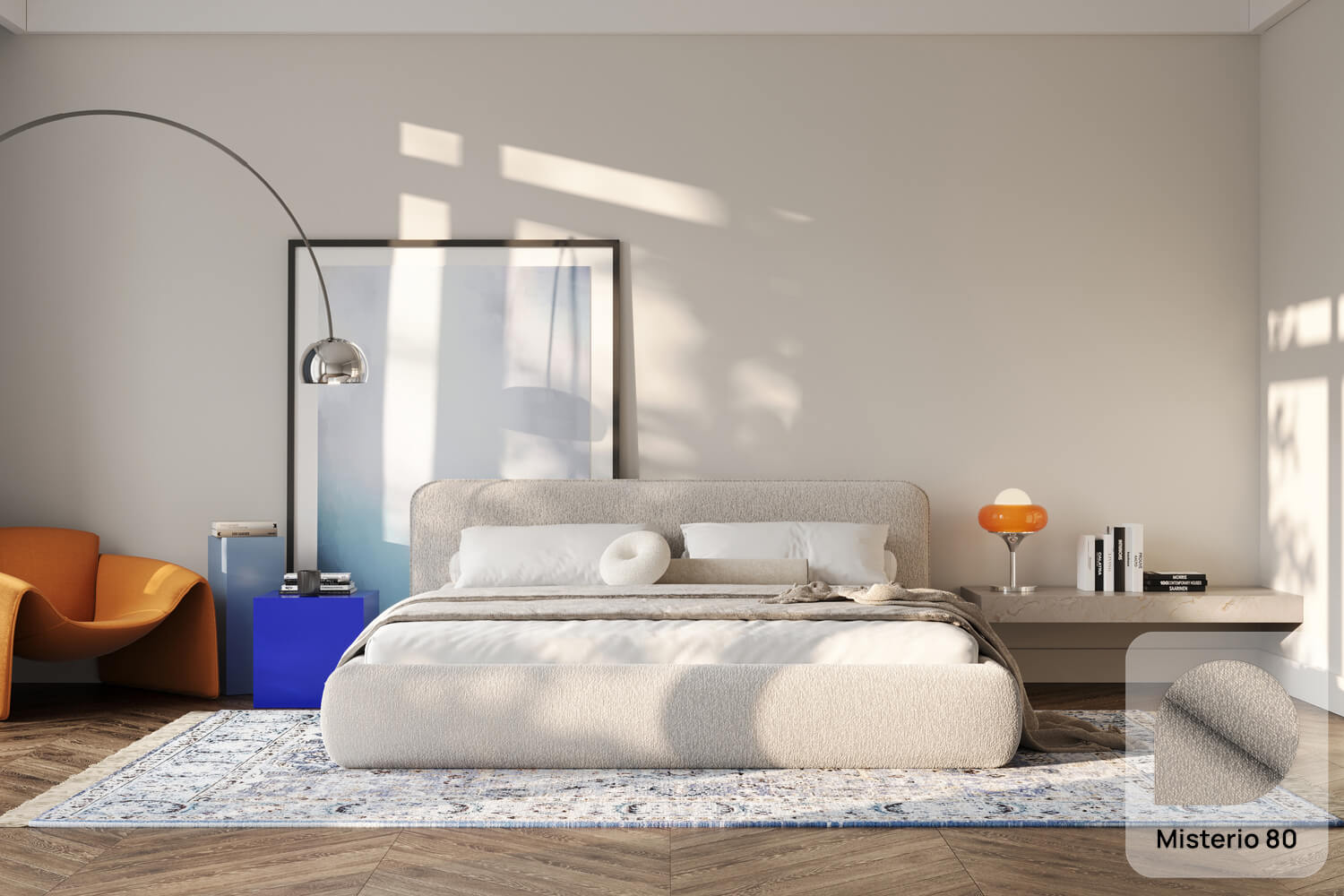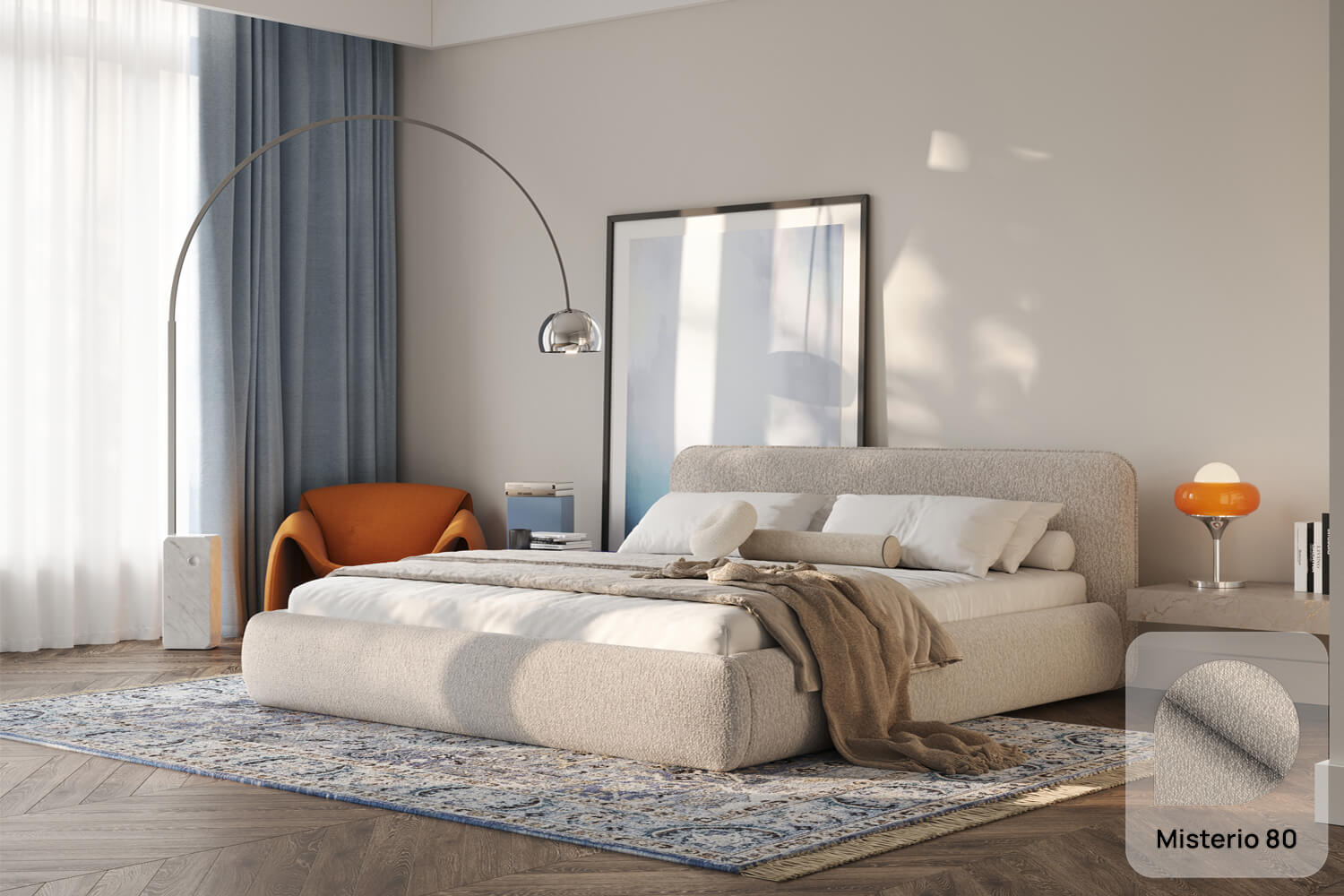 Odette von MyBed ist ein Bett, das bereits auf den ersten Blick außergewöhnlichen Komfort und Weichheit verspricht. Sein gepolstertes, sanft abgerundetes Kopfteil erinnert an ein großes, flauschiges Kissen und schafft so eine gemütliche Rückenlehne, ideal für den entspannten Abend. Die dezente, neutrale Farbgebung des Bezugs sorgt dafür, dass dieses Modell sowohl in modernen als auch in klassischeren Raumgestaltungen hervorragend zur Geltung kommt. Die leichte und harmonische Form des Odette-Bettes bringt in das Schlafzimmer eine Atmosphäre von Ruhe, Wärme und stilvollem Komfort – es ist die ideale Wahl für alle, die Ästhetik mit dem Komfort alltäglicher Entspannung verbinden.