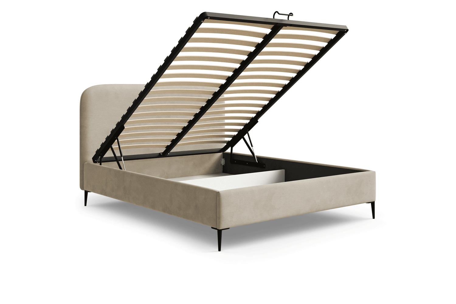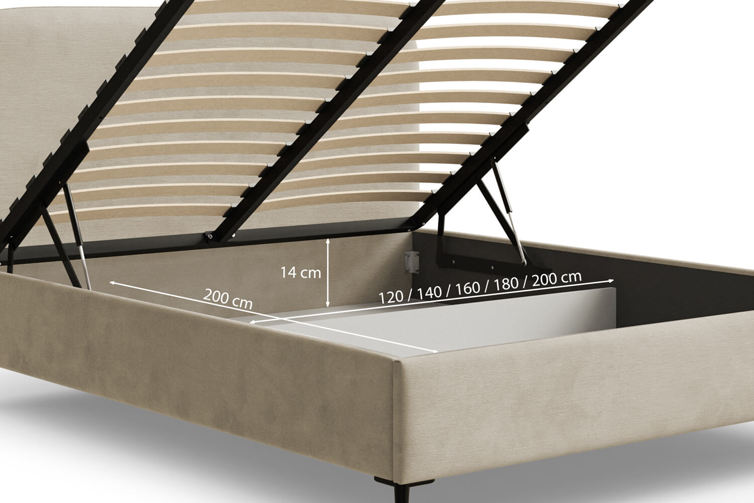 Der funktionale Bettwäsche-Stauraum in unseren Betten bietet zusätzlichen Platz zur Aufbewahrung. Ideal zur Aufbewahrung von Bettwäsche, Kissen und anderen Gegenständen, ermöglicht er, Ordnung im Schlafzimmer zu halten. Hergestellt aus langlebigen Materialien, ist er benutzerfreundlich und bietet hohen Bedienungskomfort.