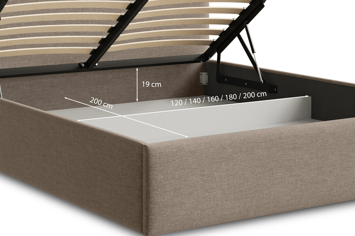 Der funktionale Bettwäscheaufbewahrer in unseren Betten bietet zusätzlichen Stauraum. Ideal zur Aufbewahrung von Bettwäsche, Kissen und anderen Gegenständen, hilft er, Ordnung im Schlafzimmer zu halten. Hergestellt aus robusten Materialien, ist er einfach zu bedienen und sorgt für hohen Komfort.