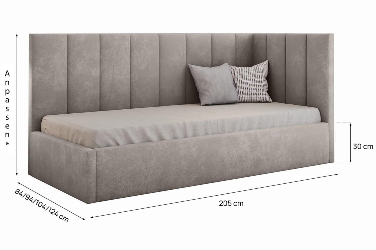 Die angezeigten Maße können Sie ändern, indem Sie eine andere Liegefläche im Konfigurator wählen