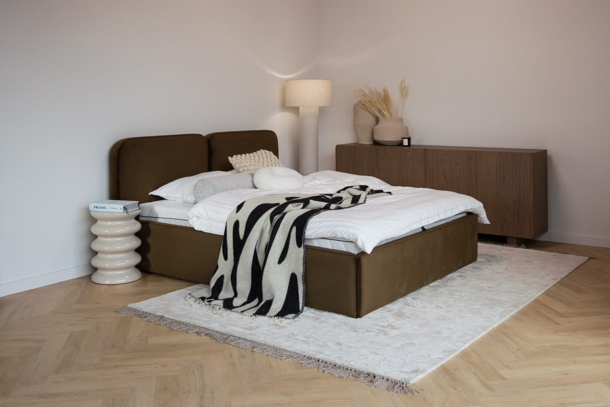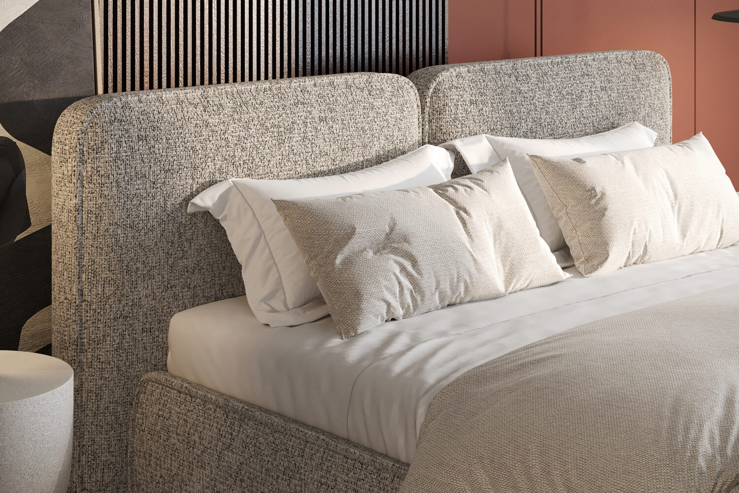 Entdecke das Bett Theo von MyBed – ein klassisches Modell, das Eleganz und einen ganz besonderen Stil in dein Schlafzimmer bringt! Die glatten Seiten bilden eine harmonische Einheit, die die Schlichtheit und Vielseitigkeit des Designs unterstreicht. Besonders auffällig ist das wunderschöne, weiche Kopfteil, das aus zwei quadratischen Kissen mit sanft abgerundeten Ecken besteht. Die besondere Polsterung verleiht dem Bett Charakter und sorgt für eine besonders gemütliche Optik. Darüber hinaus ragt das Kopfteil leicht über die Bettseiten hinaus und setzt so einen stilvollen Akzent, der Theo von anderen Modellen abhebt. Alles nur aus den besten Materialien!