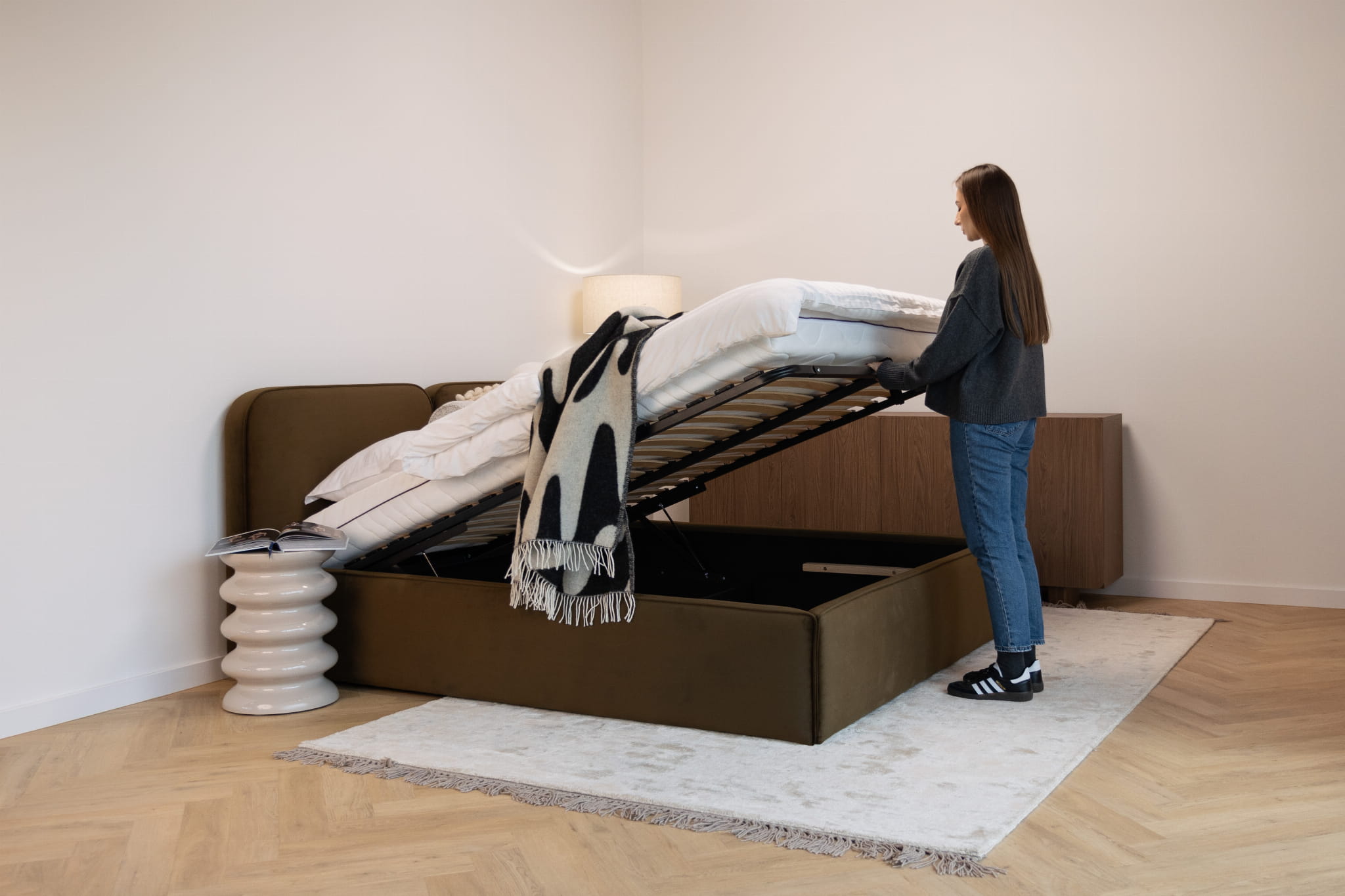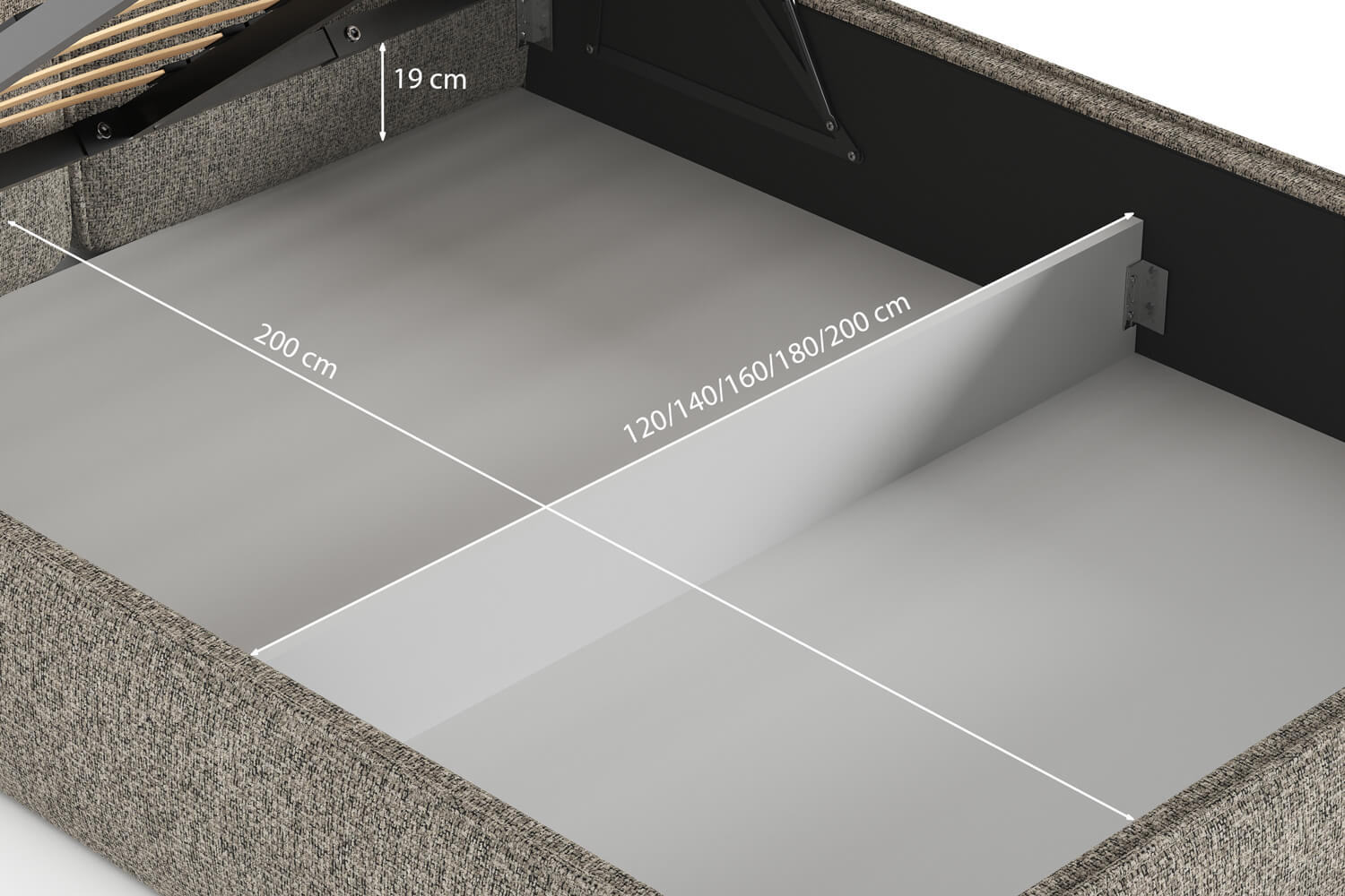 Der funktionale Bettkasten in unseren Betten bietet zusätzlichen Stauraum. Ideal zur Aufbewahrung von Bettwäsche, Kissen und anderen Gegenständen – für eine aufgeräumte Schlafumgebung. Aus langlebigen Materialien gefertigt, ist er einfach zu bedienen und sorgt für maximalen Komfort.