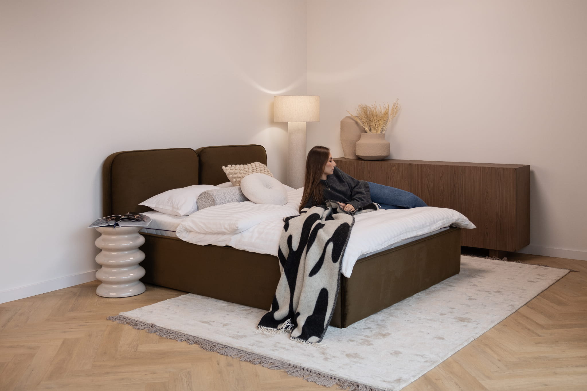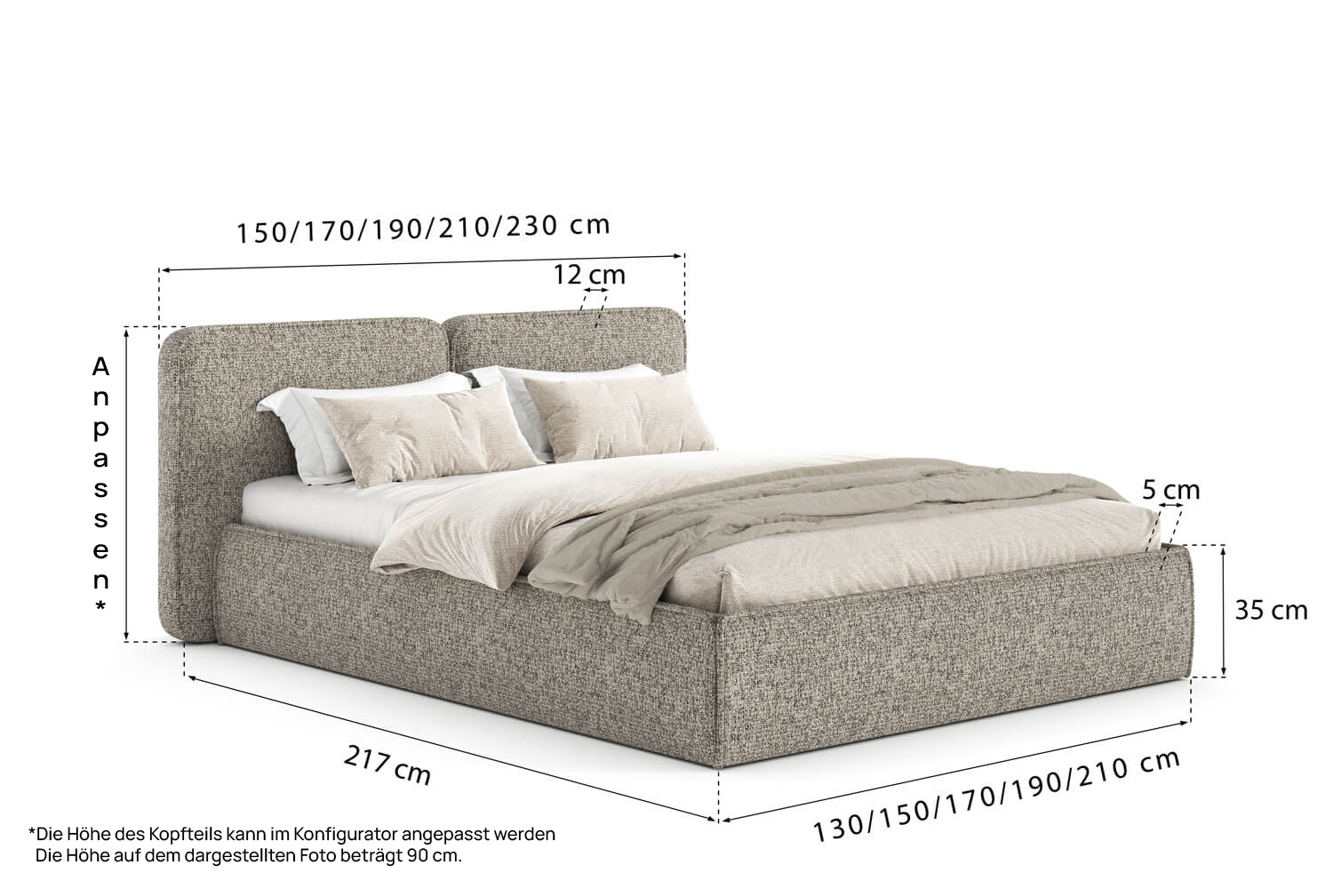 Interessierst du dich für eine andere Polsterfarbe oder möchtest du weitere Details ändern? Bei MyBed kannst du jedes Bett individuell gestalten und einzigartige Kombinationen schaffen! Wir stellen dir einen intuitiven Konfigurator zur Verfügung, mit dem du nicht nur die Ausstattungsoptionen auswählen kannst. Wähle frei zwischen verschiedenen Liegeflächen, Farben und Texturen der Stoffe, Bettgestellen, dekorativen Füßen und verschiedenen Höhen des Kopfteils. Du entscheidest auch, ob du ein Bett mit oder ohne Bettkasten möchtest. Zudem kannst du das Bett direkt mit einer Matratze bestellen!