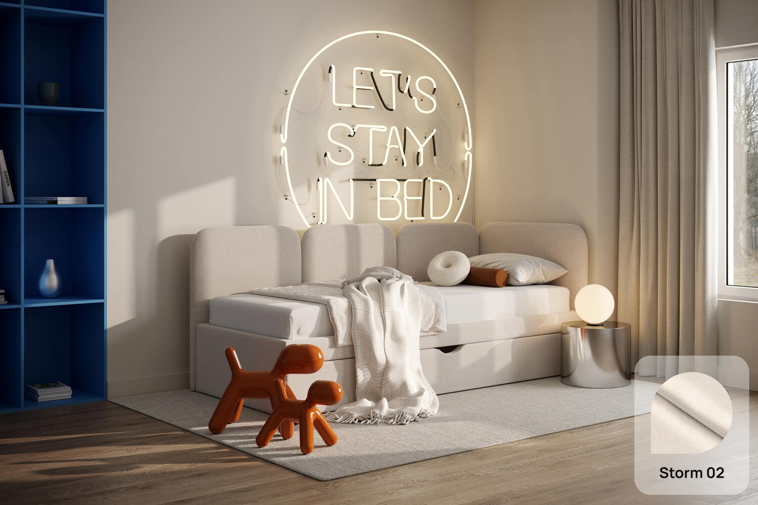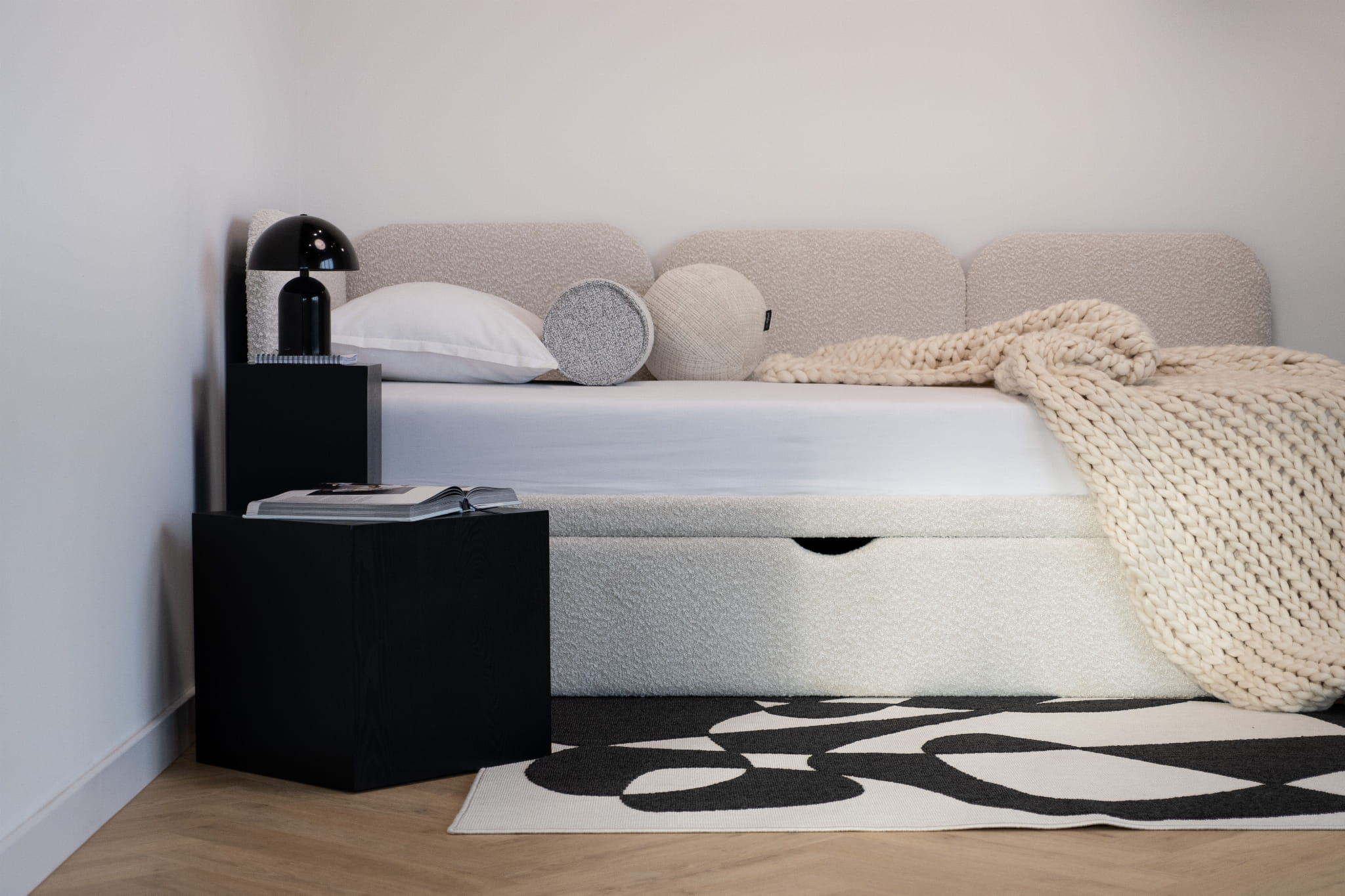 Gestalten Sie ein Bett, das perfekt auf Ihre Bedürfnisse zugeschnitten ist. Wir bieten eine vollständige Personalisierung – von der Wahl der Größe über die Art des Bezugsstoffs bis hin zu zusätzlichen Funktionen wie einem Bettkasten oder einem Kopfteil. So können Sie ein Bett entwerfen, das perfekt zu Ihrem Wohnstil passt.