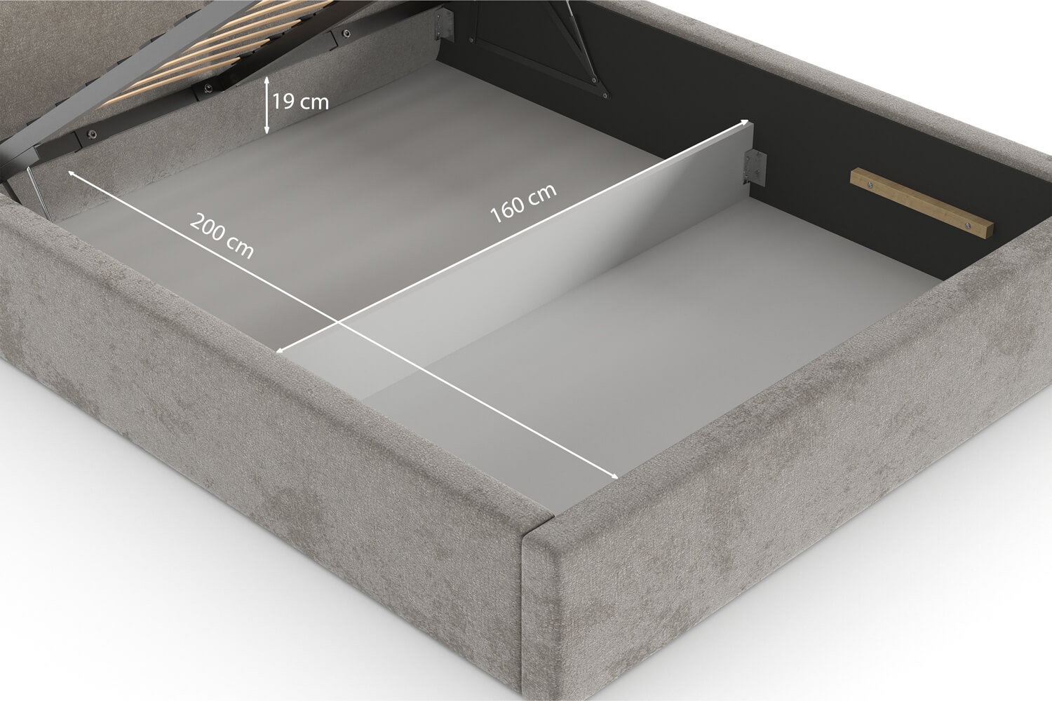 Der funktionale Bettkasten in unseren Betten bietet zusätzlichen Stauraum. Ideal für Bettwäsche, Kissen und andere Gegenstände – so bleibt Ihr Schlafzimmer ordentlich. Hergestellt aus langlebigen Materialien, ist er leicht zu bedienen und sorgt für Komfort im Alltag.