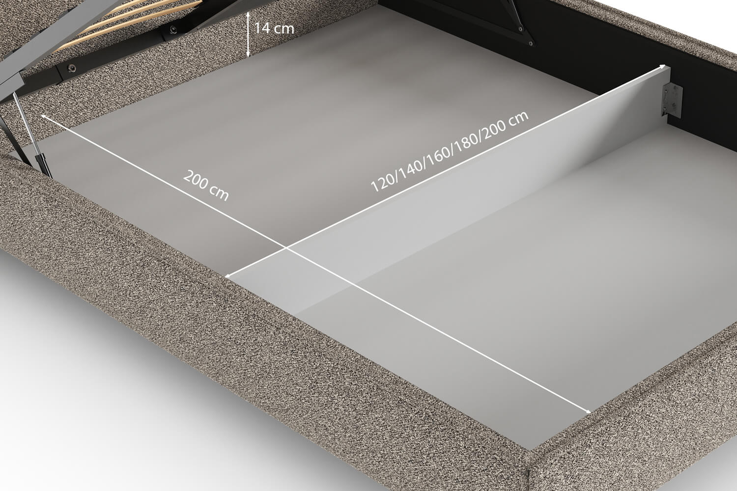 Der praktische Bettkasten bietet zusätzlichen Stauraum für Bettwäsche, Kissen und mehr. Gefertigt aus robusten Materialien, einfach zu bedienen und ideal, um Ordnung im Schlafzimmer zu halten.