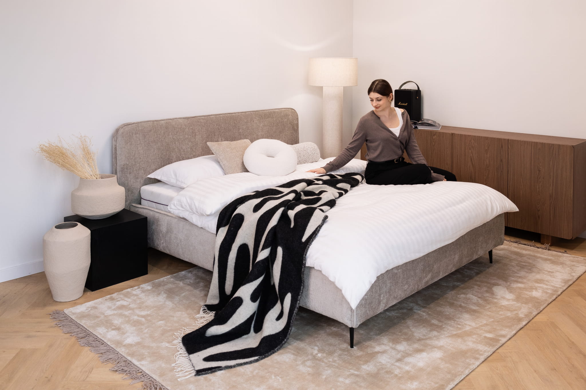 Unsere Stoffe verbinden Stil und Langlebigkeit. Sie sind abriebfest, pflegeleicht und in vielen Farben und Strukturen erhältlich – so passt das Bett perfekt zu deinem Zuhause.