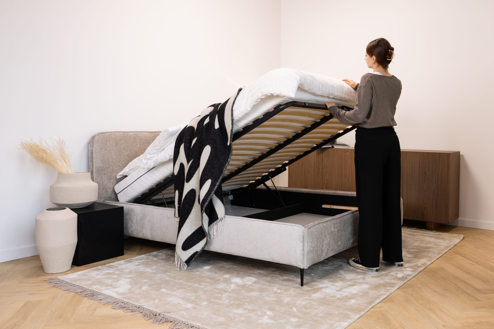 Gestalte dein perfektes Bett: Wähle Größe, Stoff, Optionen wie Kopfteil oder Bettkasten – so wird dein Bett zu einem Möbelstück, das ideal zu deinem Lebensstil passt.