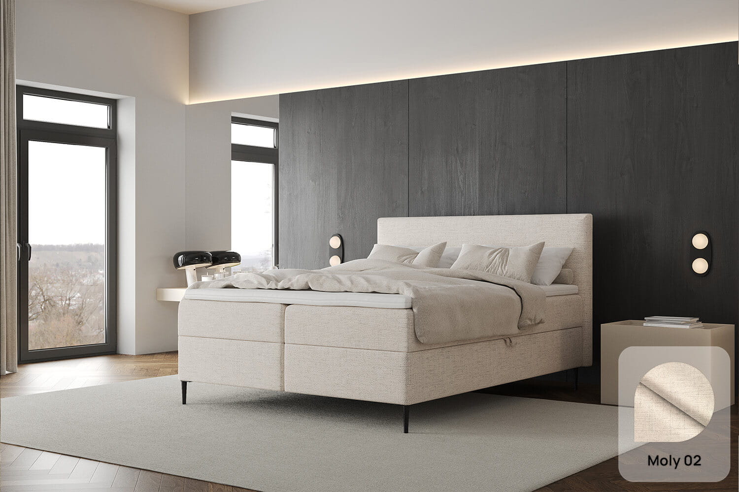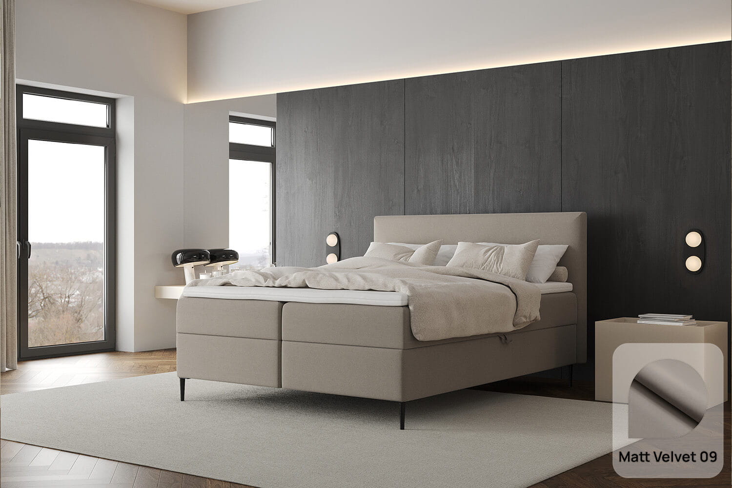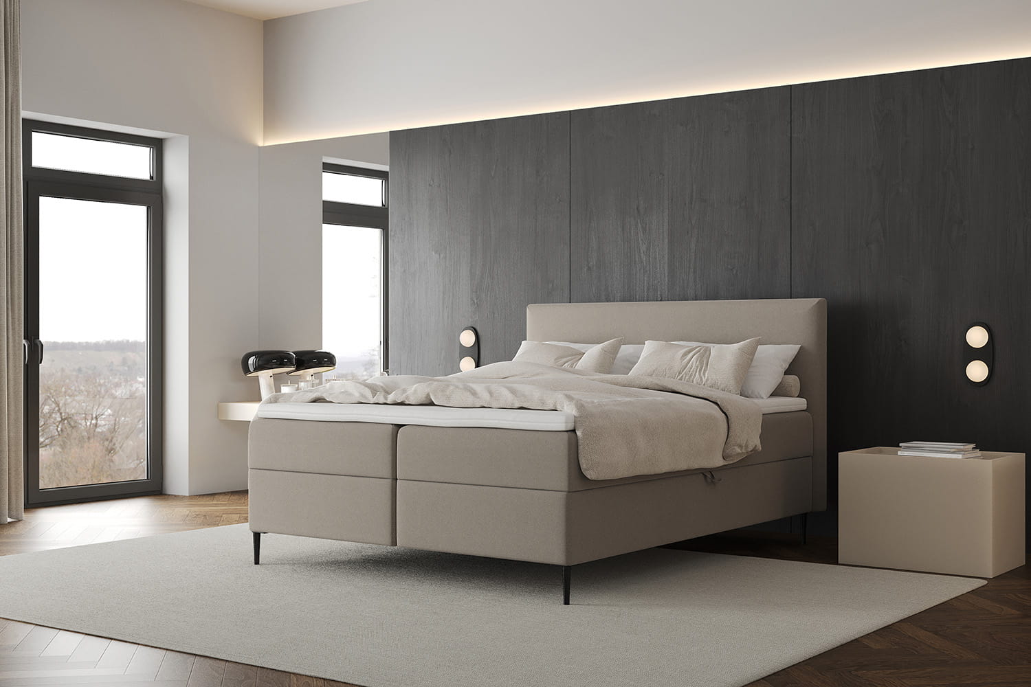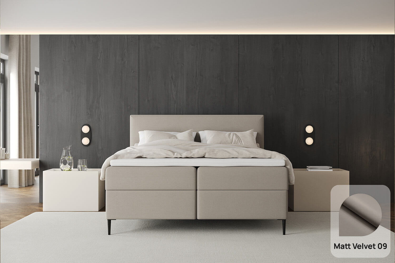 Das Boxspringbett Freya Conti von MyBed ist die perfekte Wahl für alle, die elegantes Design und außergewöhnlichen Komfort schätzen. Durch die stilvollen Beine wirkt es leicht und modern, während die glatte Konstruktion und minimalistische Form für eine subtile Eleganz sorgen. Das weiche Kopfteil, das leicht über die Bettseiten hinausragt, verleiht Gemütlichkeit und hebt dieses Modell von anderen ab. Zudem sorgen die stilvollen Beine für eine schwebende Optik und eine stabile Konstruktion. Freya Conti ist nicht nur ein perfekter Schlafplatz, sondern auch ein stilvoller Blickfang, der dem Schlafzimmer Charakter verleiht.