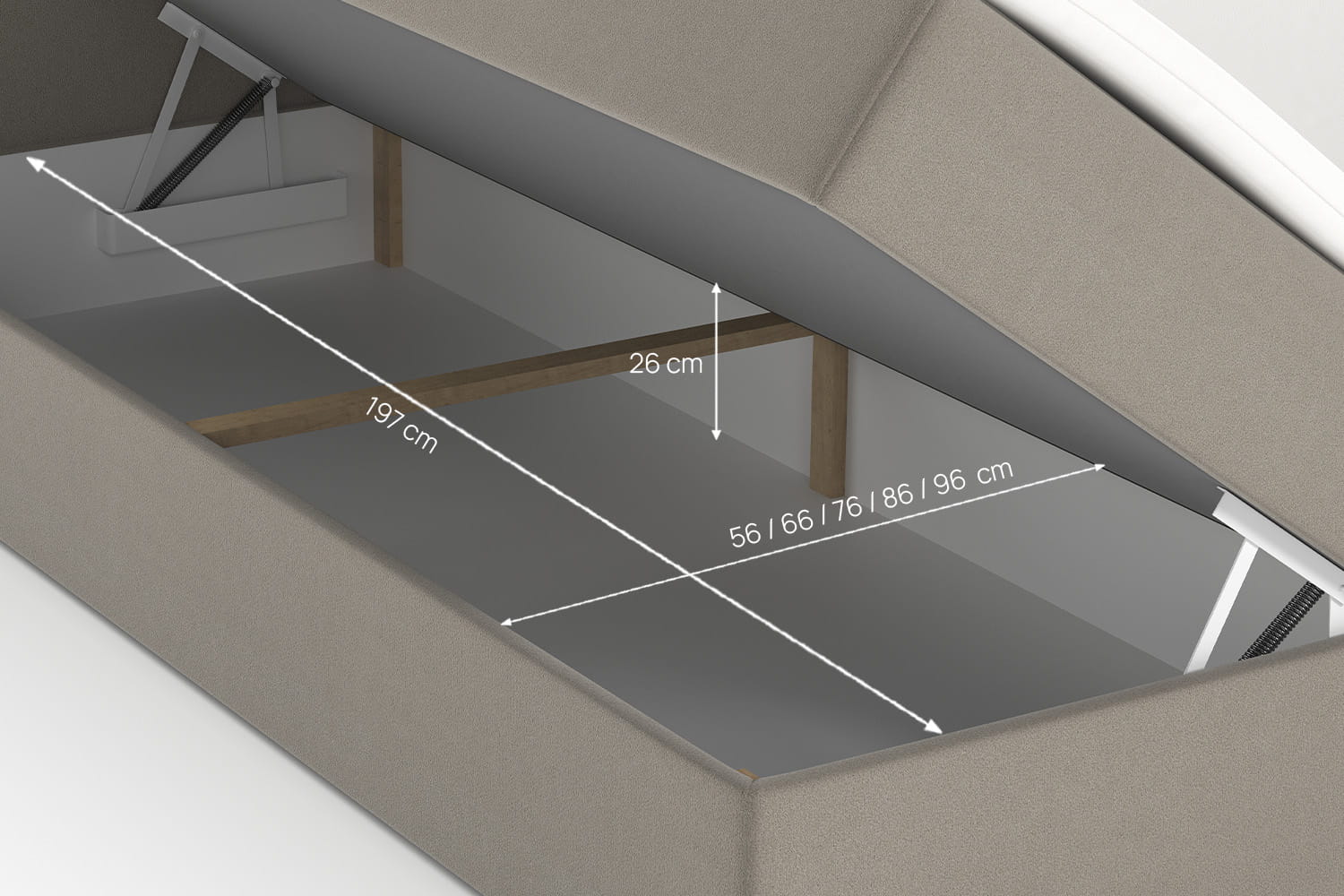 Der praktische Bettkasten in unseren Betten bietet zusätzlichen Stauraum. Ideal zur Aufbewahrung von Bettwäsche, Kissen und anderen Gegenständen – sorgt für Ordnung im Schlafzimmer. Hergestellt aus langlebigen Materialien, ist er einfach zu bedienen und bietet maximalen Komfort.