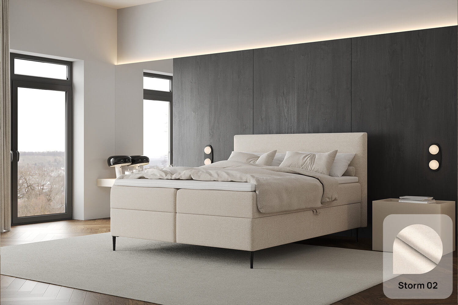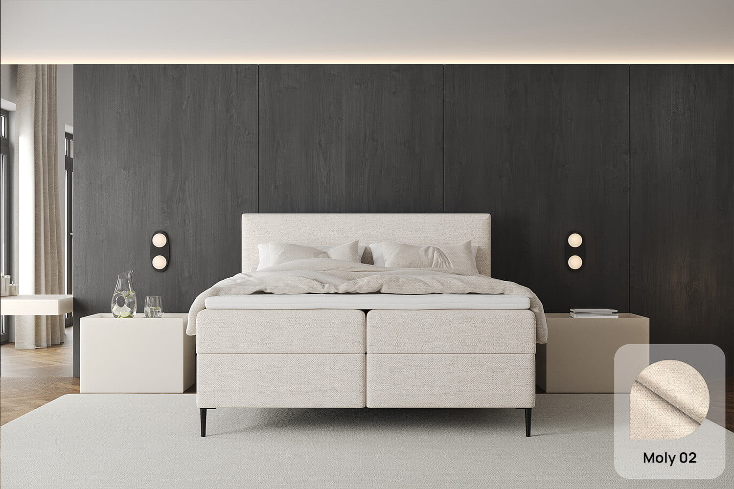 Interessierst du dich für eine andere Polsterfarbe oder möchtest weitere Details ändern? Bei MyBed kannst du jedes Bett individuell anpassen und einzigartige Kombinationen schaffen! Wir bieten dir einen intuitiven Konfigurator, mit dem du deine eigenen Gestaltungsmöglichkeiten auswählen kannst. Wähle aus verschiedenen Liegeflächen, Farben und Stofftexturen, Gestelltypen, dekorativen Beinen und verschiedenen Kopfteilhöhen. Du kannst auch entscheiden, ob du ein Bett mit oder ohne Bettkasten möchtest. Zusätzlich kannst du ein komplettes Bett mit Matratze bestellen!