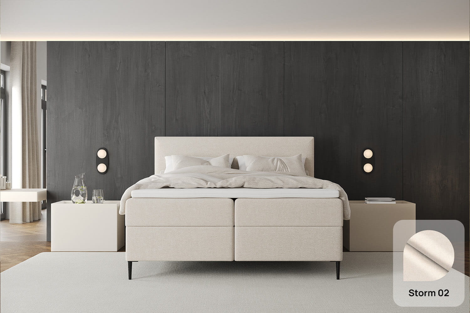 Gestalte dein Bett ganz nach deinen Bedürfnissen. Wir bieten eine vollständige Personalisierung – von der Auswahl der Größe über den Polsterstoff bis hin zu zusätzlichen Funktionen wie einem Bettkasten oder Kopfteil. So kannst du dein Bett perfekt auf dein Interieur und deinen Lebensstil abstimmen.