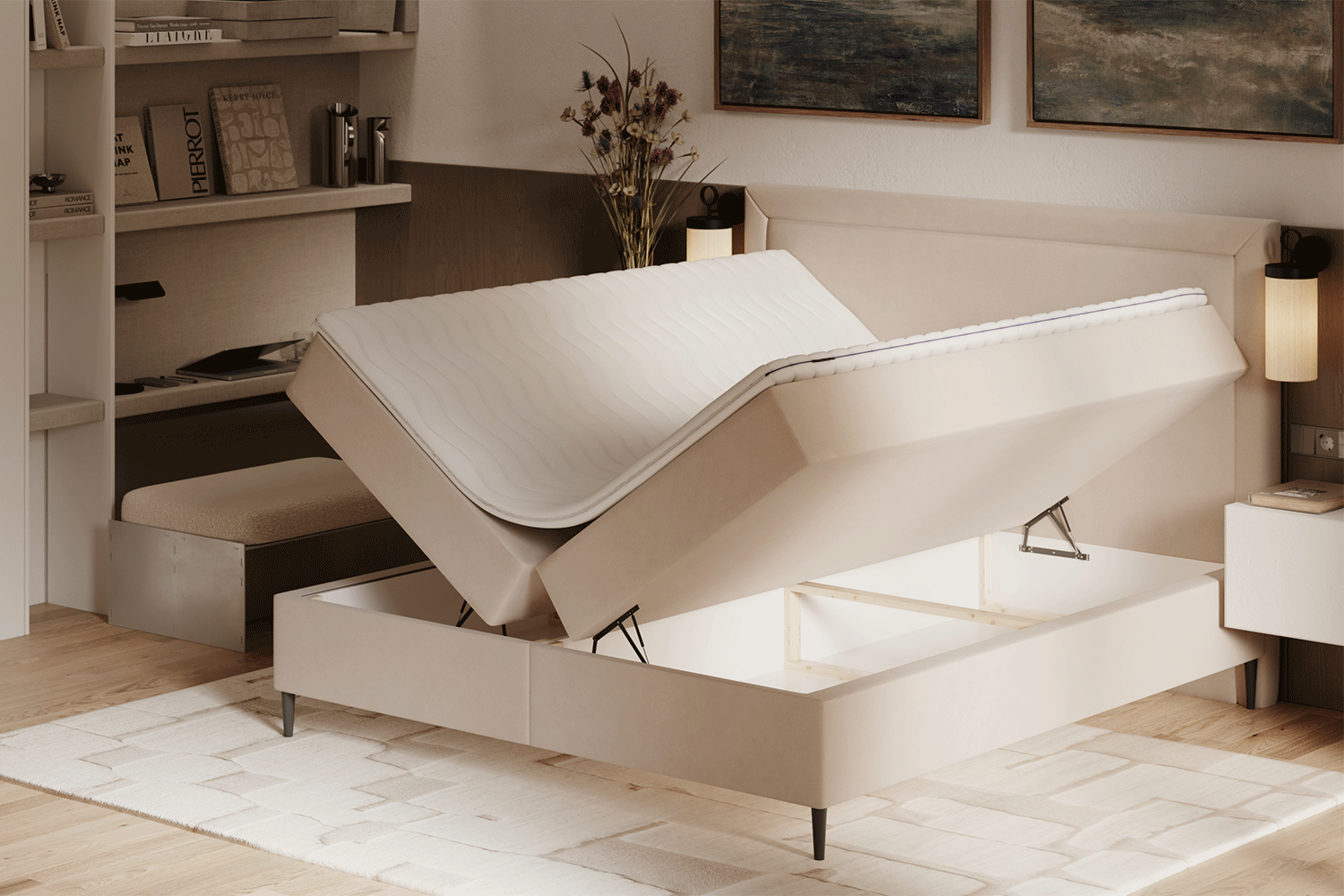 Gestalten Sie ein Bett, das perfekt auf Ihre Bedürfnisse zugeschnitten ist. Wir bieten die Möglichkeit einer vollständigen Personalisierung – von der Wahl der Größe über den Bezugstoff bis hin zu zusätzlichen Funktionen wie Bettwäscheaufbewahrung oder Kopfteil. So können Sie ein Bett entwerfen, das ideal zu Ihrem Interieur und Lebensstil passt.
