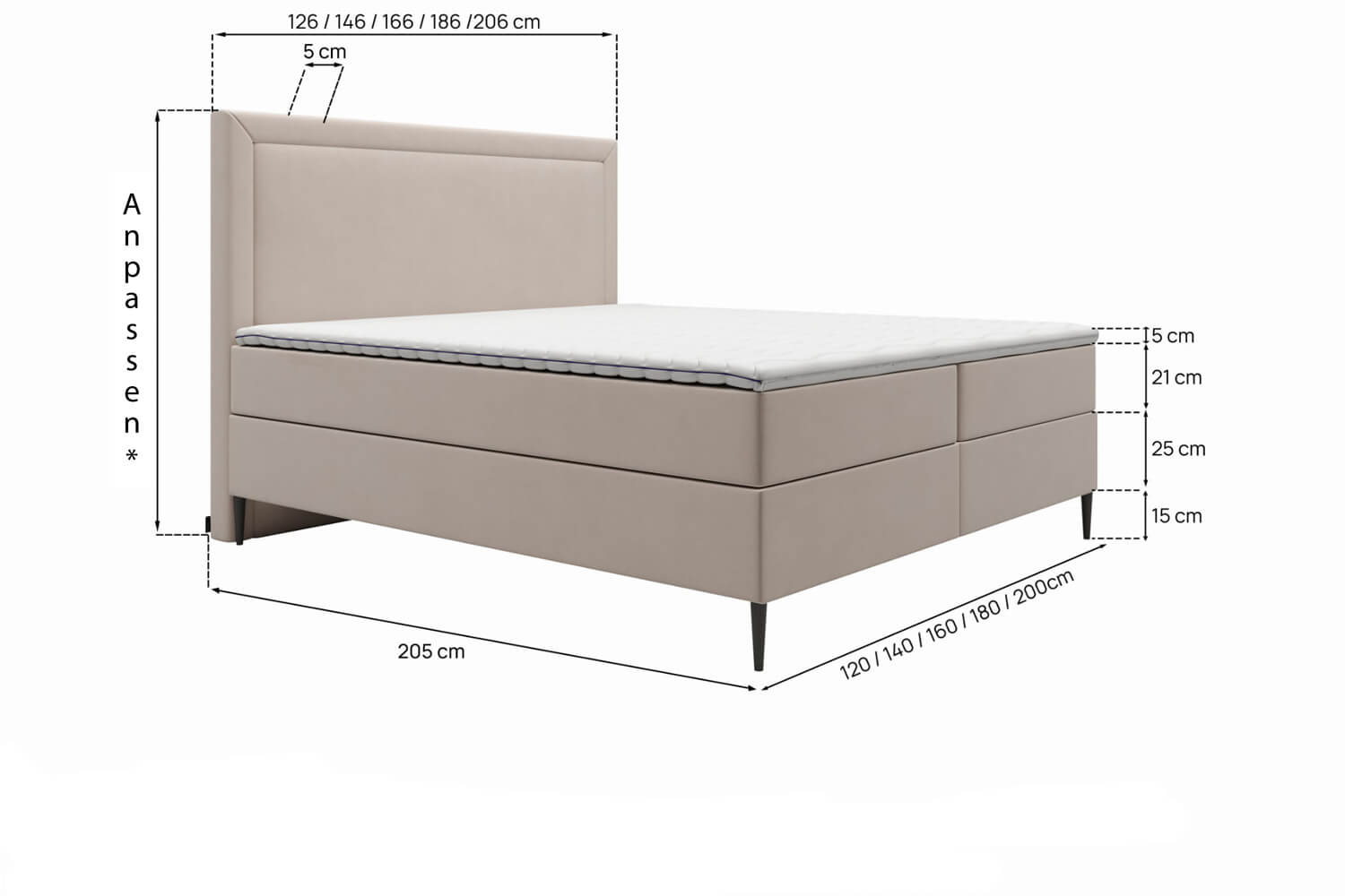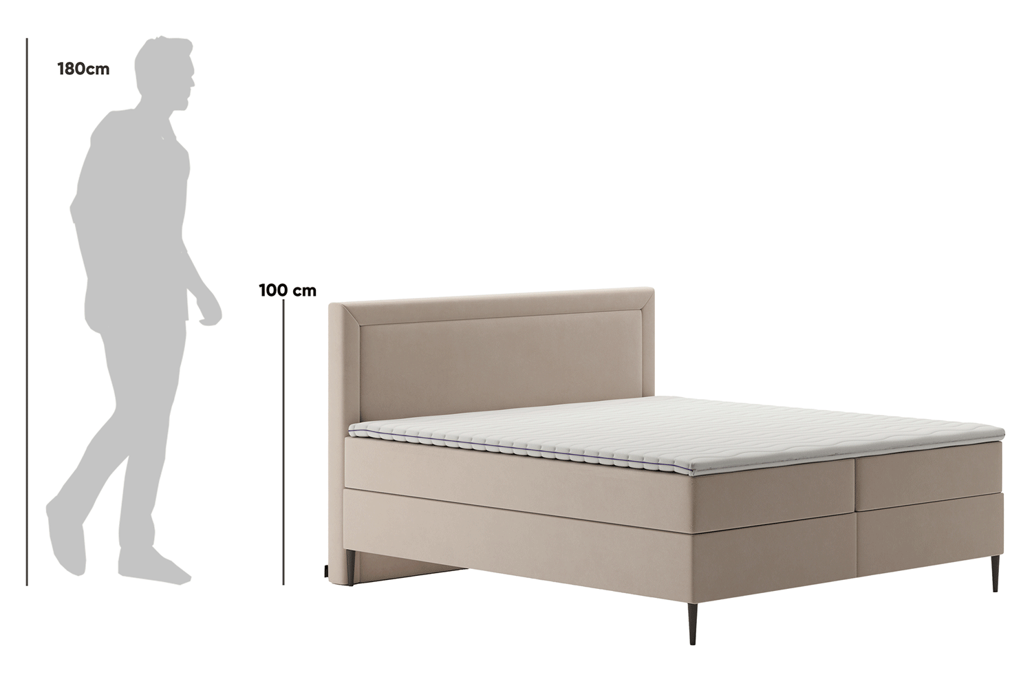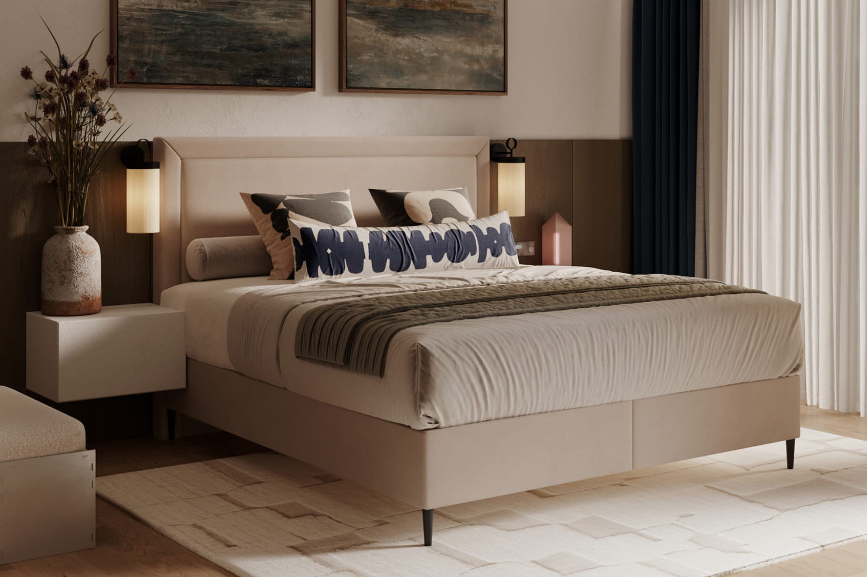 Das kontinentale Niki-Bett auf dekorativen Beinen von MyBed verleiht dem Schlafzimmer einen unvergleichlichen Charme mit einer großen Portion Eleganz. Glatte Seiten betonen seinen Charakter, und das weiche Kopfteil, verziert mit einer zarten Naht am Rand, verleiht ihm Subtilität. Die Nähte erzeugen einen außergewöhnlichen Raumeffekt und laden zum Entspannen und Ausruhen ein. Es ist die ideale Wahl für all jene, die eine Kombination aus modernem Design und Gemütlichkeit in ihrem Interieur suchen. Vier geformte Beine erleichtern nicht nur die Reinigung Ihres Raumes, sondern bieten auch bislang ungenutzten Stauraum. Entdecken Sie mit dem Niki-Bett eine neue Dimension des Komforts und genießen Sie täglich ein sehr stilvolles und inspirierendes Schlafzimmer.