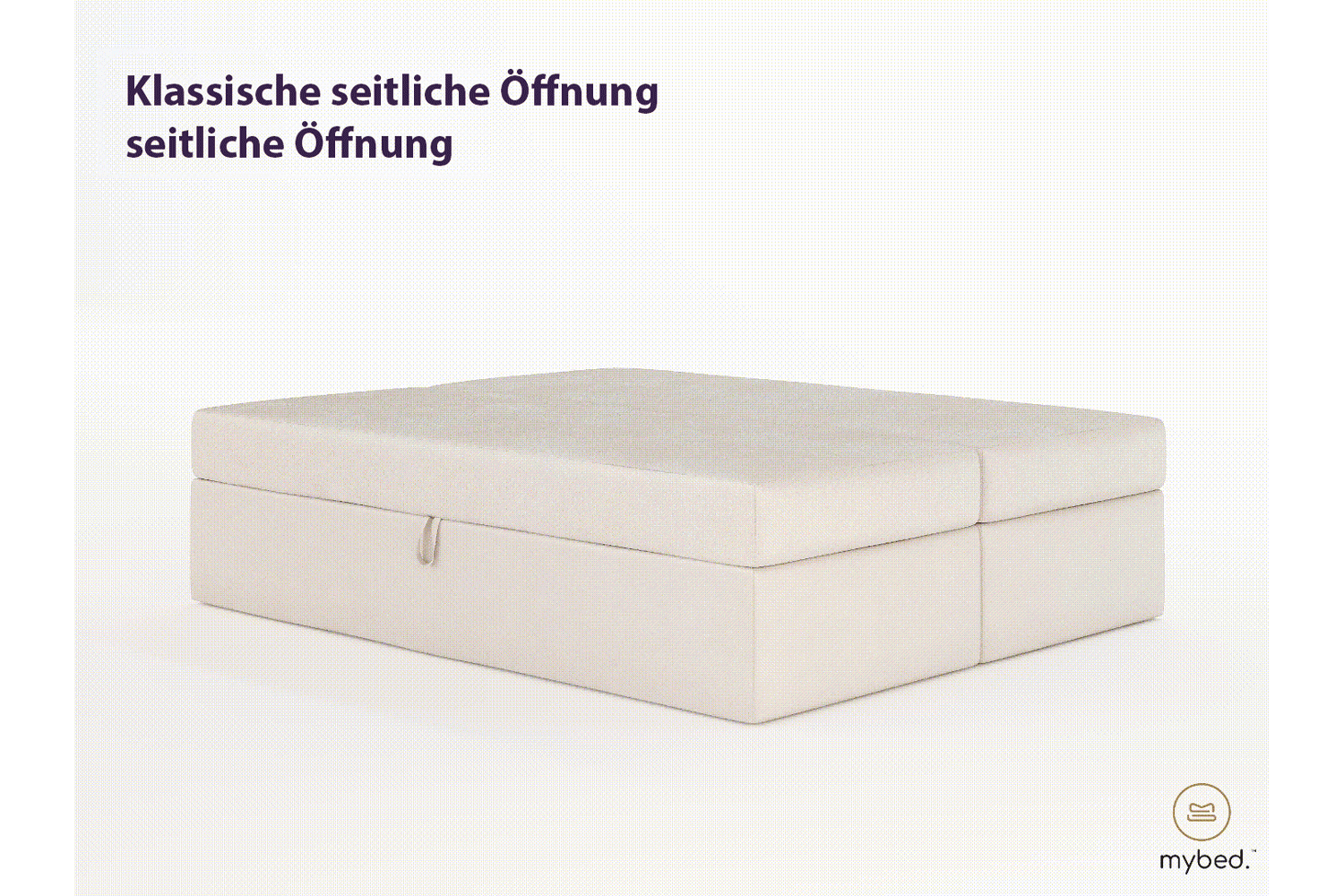 Interessiert Sie eine andere Farbe des Bezugstoffs oder möchten Sie weitere Details ändern? Bei MyBed können Sie jedes Bett nach Belieben umgestalten und so einzigartige Kombinationen kreieren! Wir stellen Ihnen einen intuitiven Konfigurator zur Verfügung, mit dem Sie Ihre individuellen Ausstattungsoptionen und mehr auswählen können. Wählen Sie frei aus zahlreichen Liegeflächen, Farben und Stoffstrukturen, Rahmenarten, dekorativen Beinen sowie der Höhe des Kopf- oder Fußteils. Sie entscheiden auch selbst, ob Sie ein Bett mit Bettwäscheaufbewahrung oder ohne wünschen. Zudem können Sie ein komplettes Bett mit Matratze bestellen!