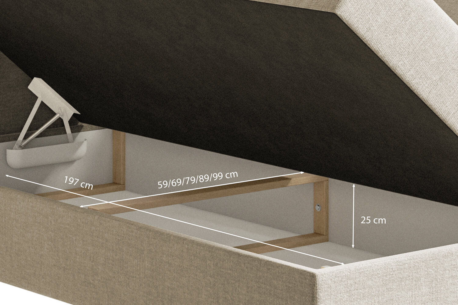 Die angezeigten Maße ändern sich je nach gewählter Liegefläche im Konfigurator
