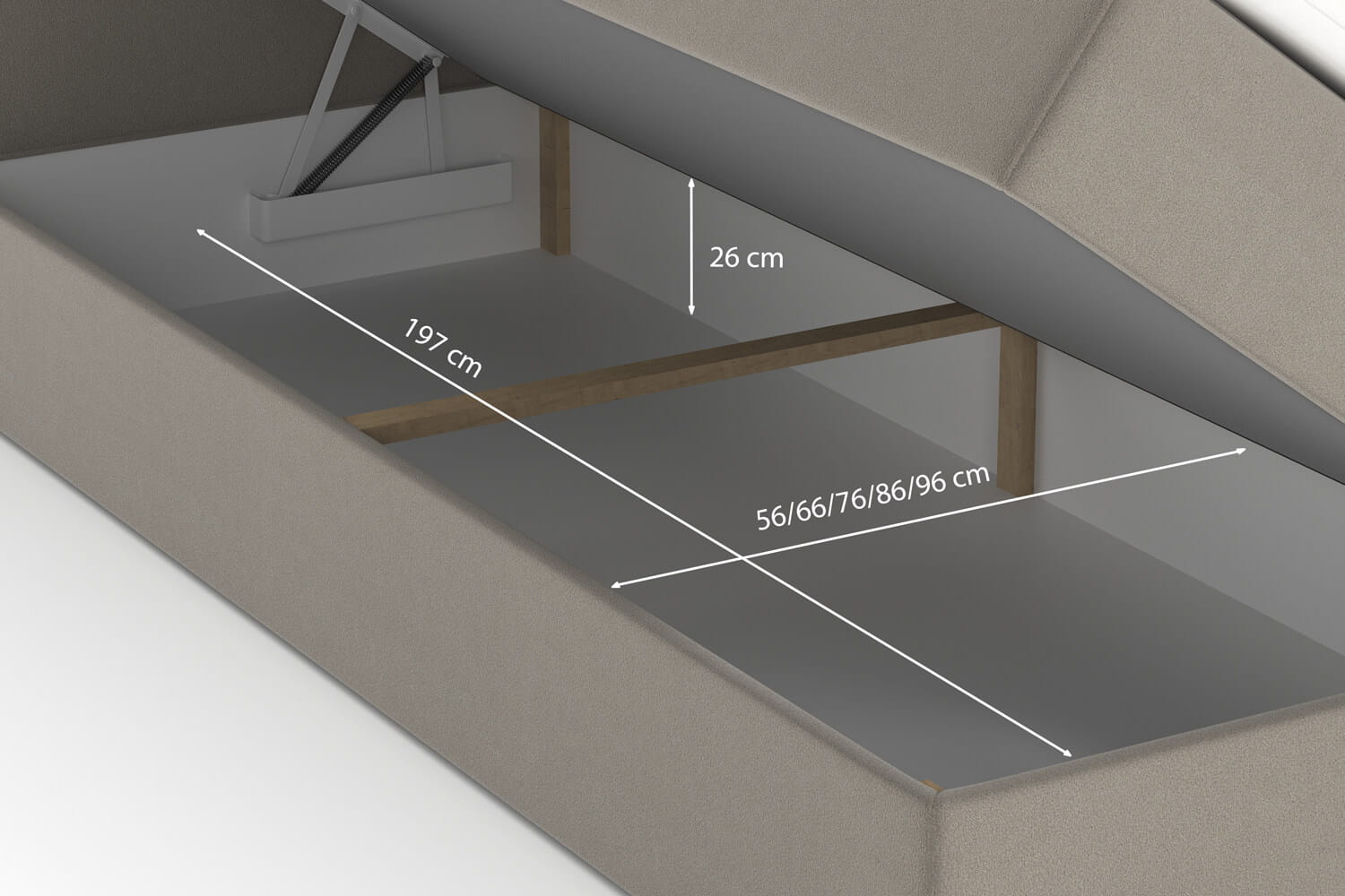 Der funktionale Bettkasten in unseren Betten bietet zusätzlichen Stauraum. Ideal für Bettwäsche, Kissen und andere Gegenstände – so bleibt das Schlafzimmer ordentlich. Aus langlebigen Materialien gefertigt, ist er leicht zu bedienen und sorgt für Komfort im Alltag.