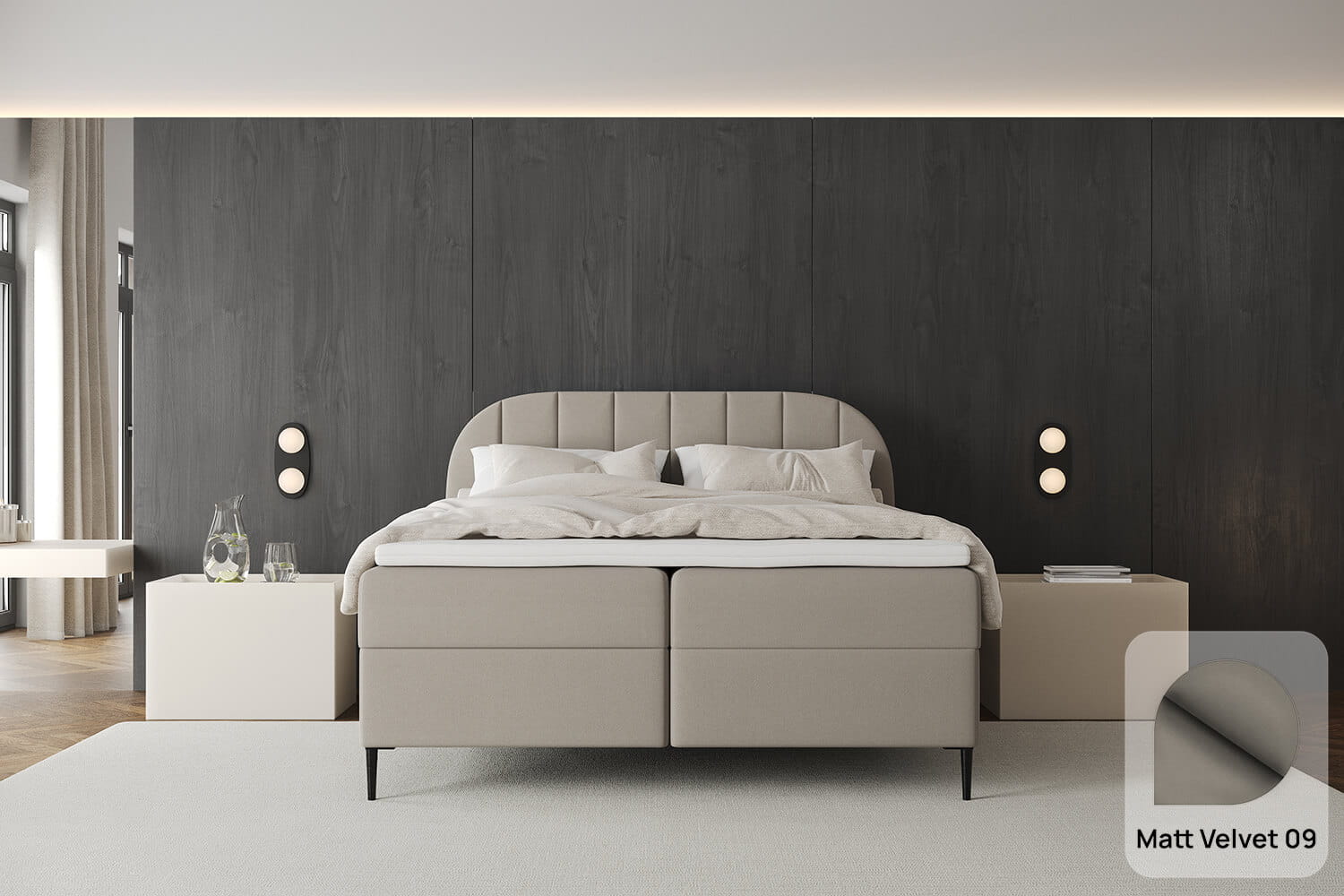 Suchst du ein kontinentales Bett mit Bettkasten, einer bequemen 7-Zonen-Matratze und einem komfortabel hohen Kopfteil? Dann entdecke Ube Conti von MyBed – ein Boxspringbett, dessen klassische Schlichtheit sowohl in elegante Schlafzimmer als auch in modernistische Wohnräume passt. Das zeitlose Doppelbett schafft sofort eine behagliche Atmosphäre, und dank der großen Stoffauswahl integrierst du es perfekt in nahezu jedes Interieur – ganz nach deinem persönlichen Stil.