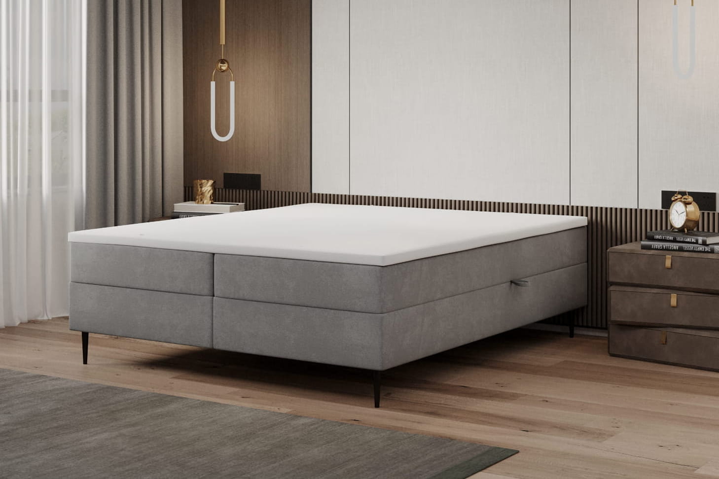 Entdecken Sie die Essenz der Schlichtheit mit dem minimalistischen Kontinentalbett von MyBed. Dieses einzigartige Modell, das ohne Kopfteil auskommt, fügt sich perfekt in moderne Räume ein – auch im Hotelstil. Dank einer Konstruktion, die von eleganten Beinen getragen wird, gewinnt das Kontinentalbett an Leichtigkeit und subtiler Charakter, wodurch ein Gefühl von Geräumigkeit entsteht. Der mehrschichtige Aufbau des Kontinentalbettes sorgt für außergewöhnlichen Schlafkomfort, passt sich der Körperform an und garantiert regenerativen Erholungsschlaf. Es ist die perfekte Wahl für Ihr Schlafzimmer, wenn Sie Minimalismus und Funktionalität schätzen.