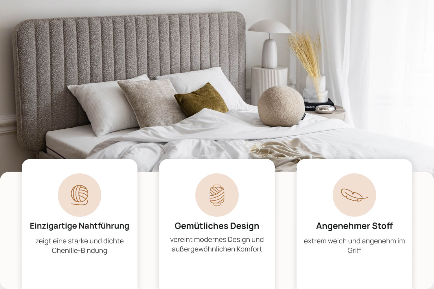 Ein Element, das Ihrem Schlafzimmer eine neue Dimension verleiht. Ihre Weichheit und ihr elegantes Aussehen laden zum Entspannen ein, und ihre Anwesenheit schafft eine angenehme Atmosphäre. Auf einem Bett oder Sessel platziert, werden sie zum Mittelpunkt eines Arrangements, das die Blicke auf sich zieht und dem Innenraum eine einzigartige Note verleiht.
