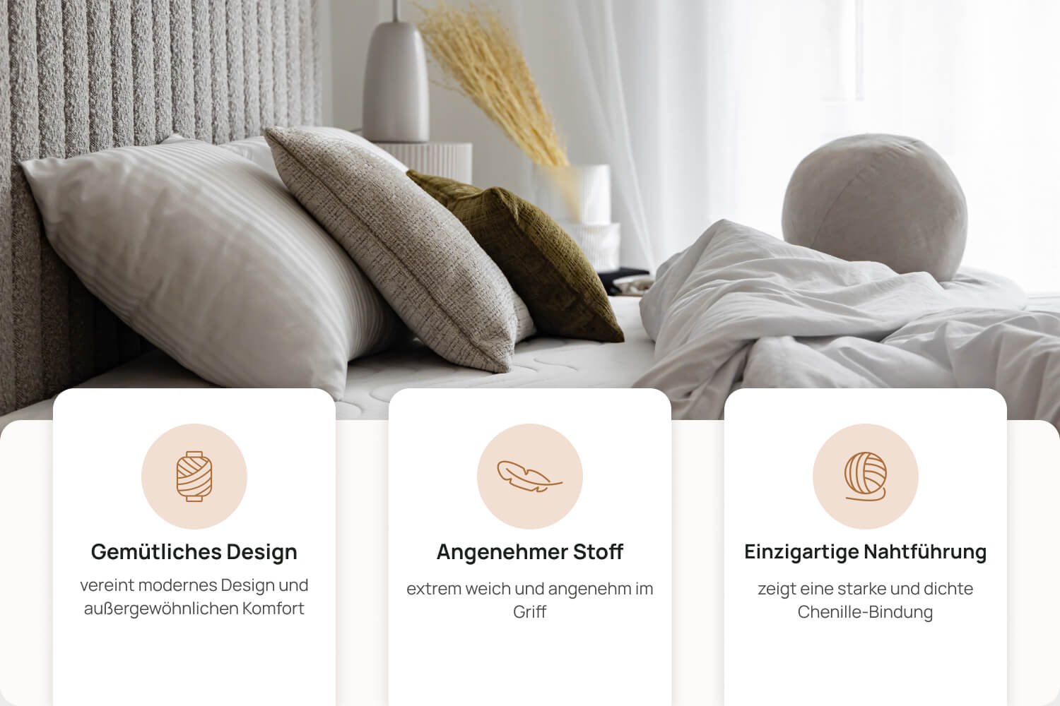 Ein Element, das Ihrem Schlafzimmer eine neue Dimension verleiht. Ihre Weichheit und ihr elegantes Aussehen laden zum Entspannen ein, und ihre Anwesenheit schafft eine angenehme Atmosphäre. Auf einem Bett oder Sessel platziert, werden sie zum Mittelpunkt eines Arrangements, das die Blicke auf sich zieht und dem Innenraum eine einzigartige Note verleiht.