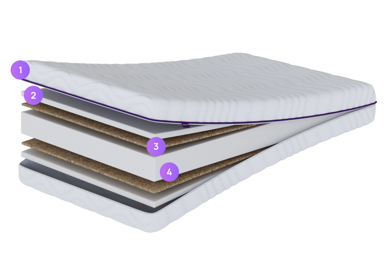 Die Kokosmatte besitzt antibakterielle Eigenschaften und verhindert so die Vermehrung von Milben und Schimmel. Neben ihren gesundheitlichen Vorteilen verleiht sie der Matratze zusätzliche Festigkeit und verteilt das Körpergewicht gleichmäßig, was den Schlafkomfort erhöht.