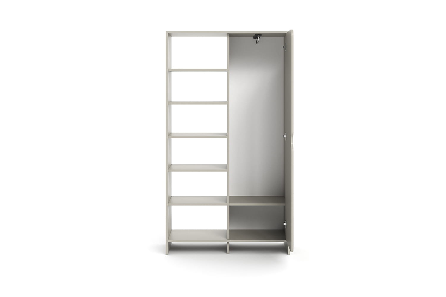 Er verleiht dem Raum eine neue Dimension. Seine geometrische Form und der warme Kaschmirton ziehen sofort die Blicke auf sich und bringen zugleich Ruhe und Harmonie ins Ambiente. Ob im Schlafzimmer, Wohnzimmer oder Flur – der Schrank wird zum funktionalen Mittelpunkt der Einrichtung, wo Ästhetik auf praktische Nutzung trifft.