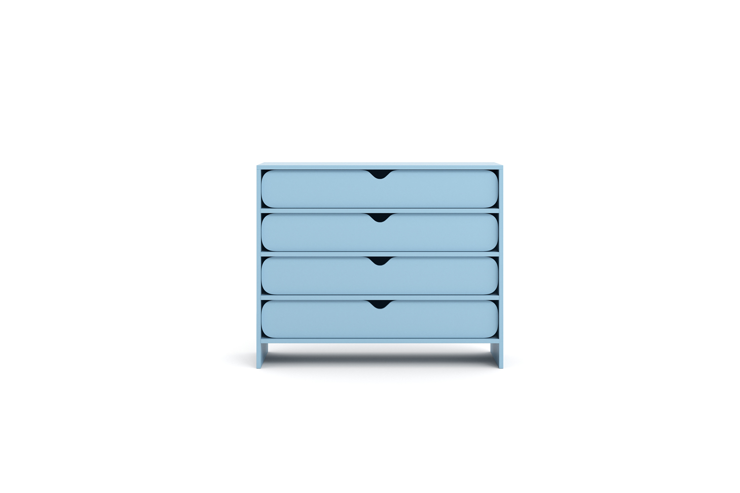 Sie verleiht dem Raum eine neue Dimension. Ihre geometrische Form und der kühle Baby‑Blue‑Farbton ziehen sofort die Blicke auf sich und bringen zugleich Ruhe und Harmonie in die Umgebung. Ob im Schlafzimmer, Wohnzimmer oder Flur – die Kommode wird zum funktionalen Mittelpunkt der Einrichtung, wo sich Ästhetik und Alltagstauglichkeit treffen.